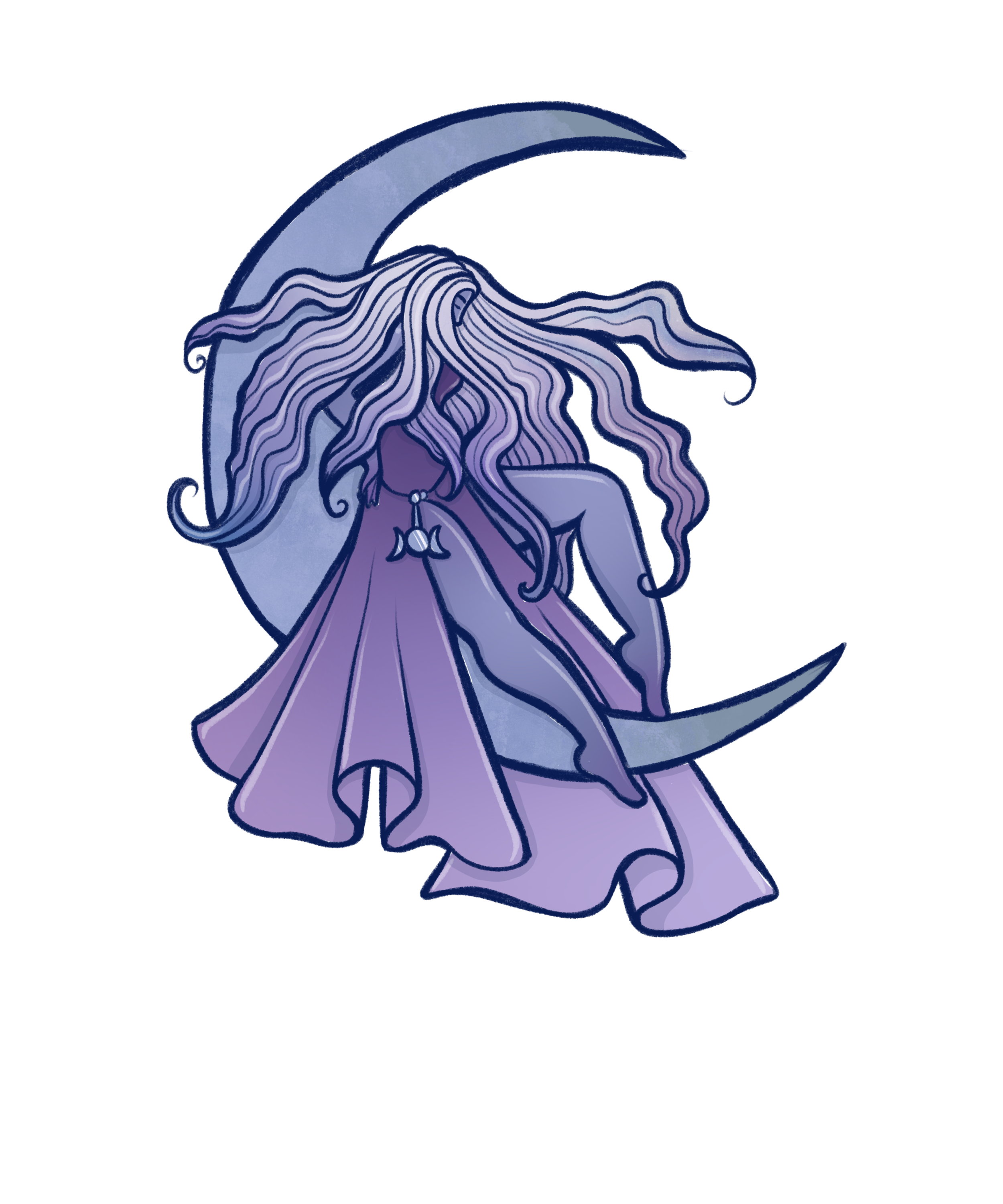 My Moonlit Atelier sticker is probably the piece that captures that feeling best for me right now. A moon goddess in silver and shadow. If you're a fellow moonchild you might just want her on everything, which, same.
